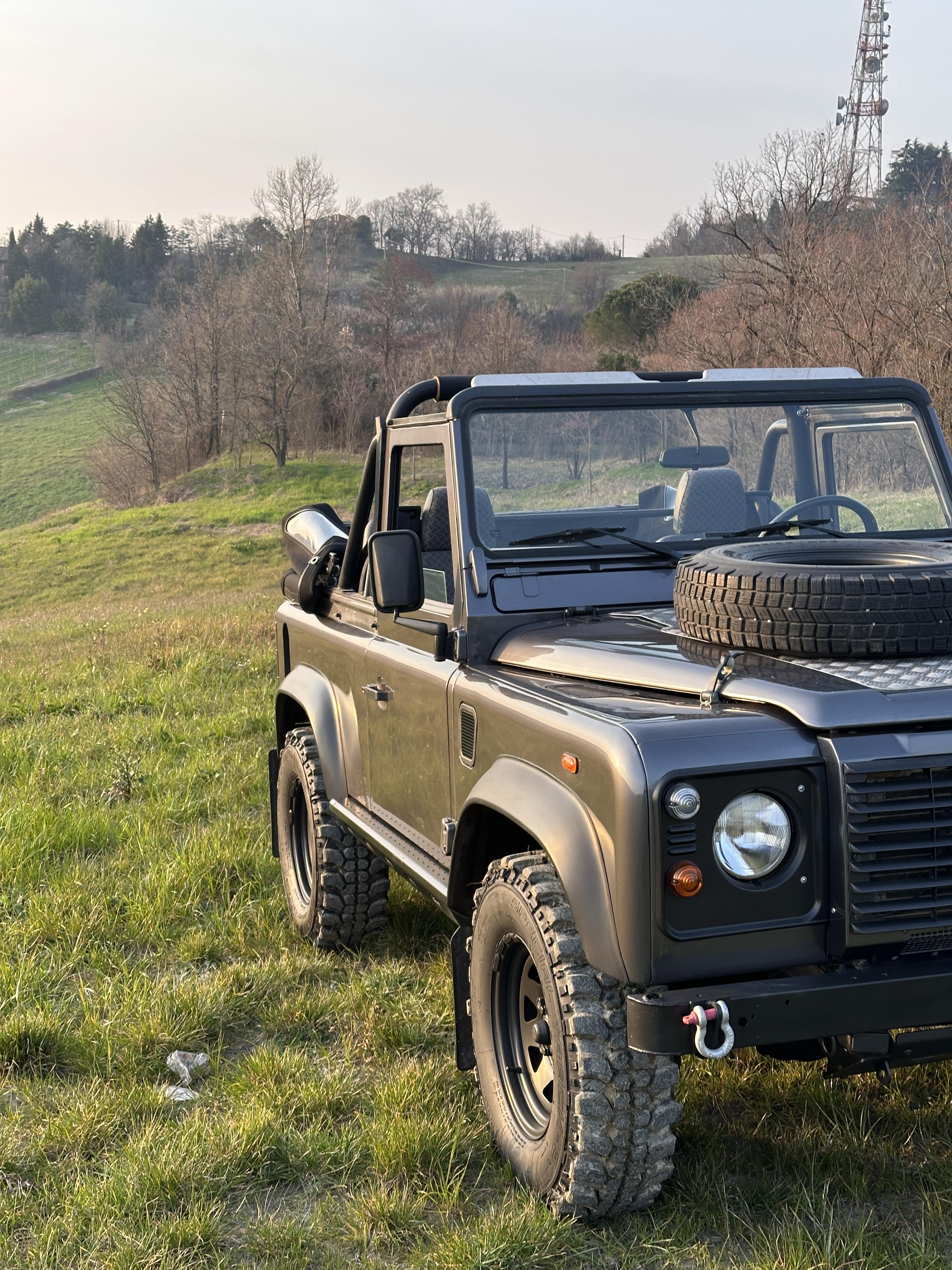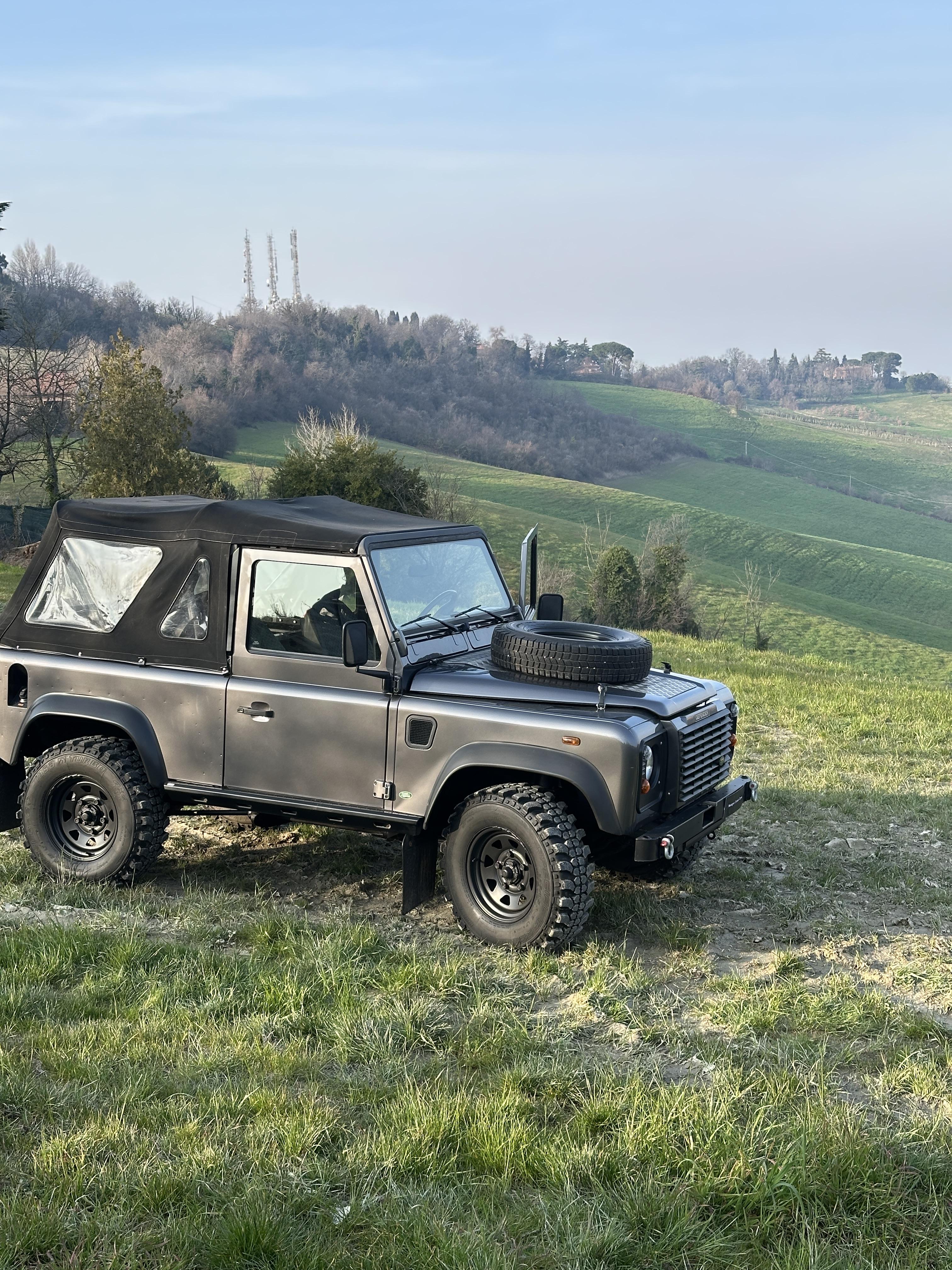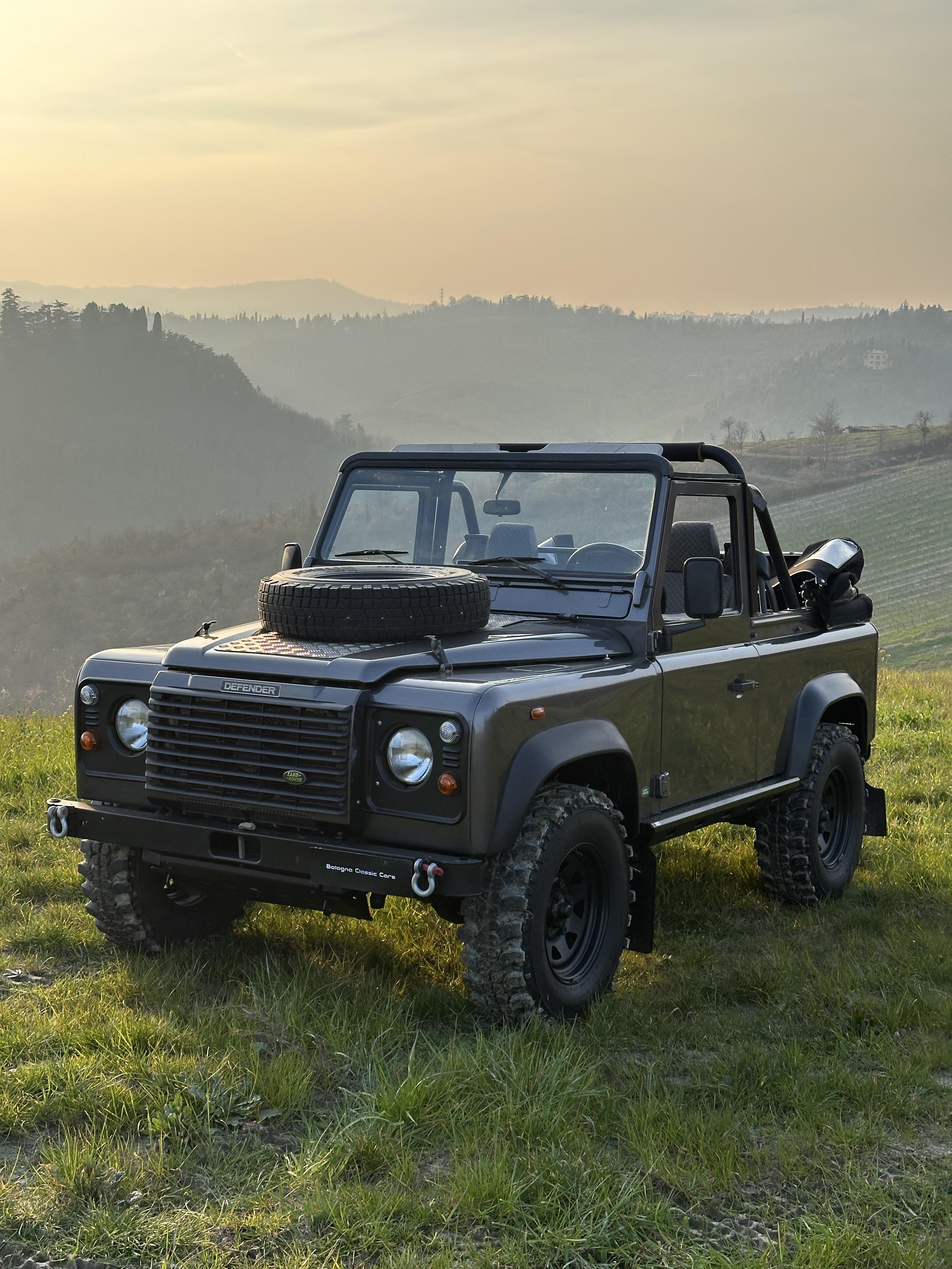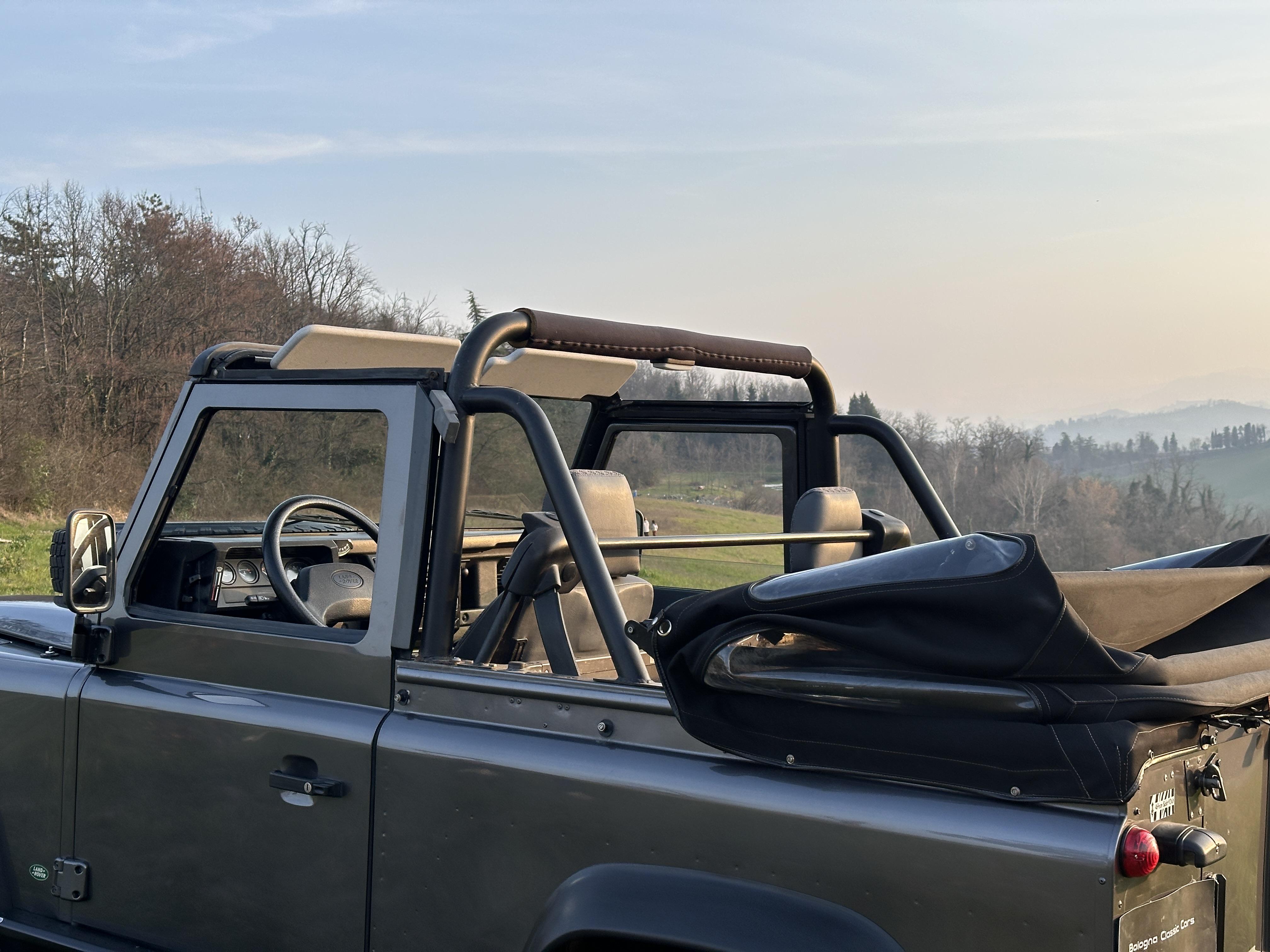 Un rarissimo Land Rover Defender 90 Cabriolet TWO, una speciale edizione limitata prodotta nel 2006 esclusivamente per il mercato tedesco, con una produzione totale di sole 200 unità in tutto il mondo.