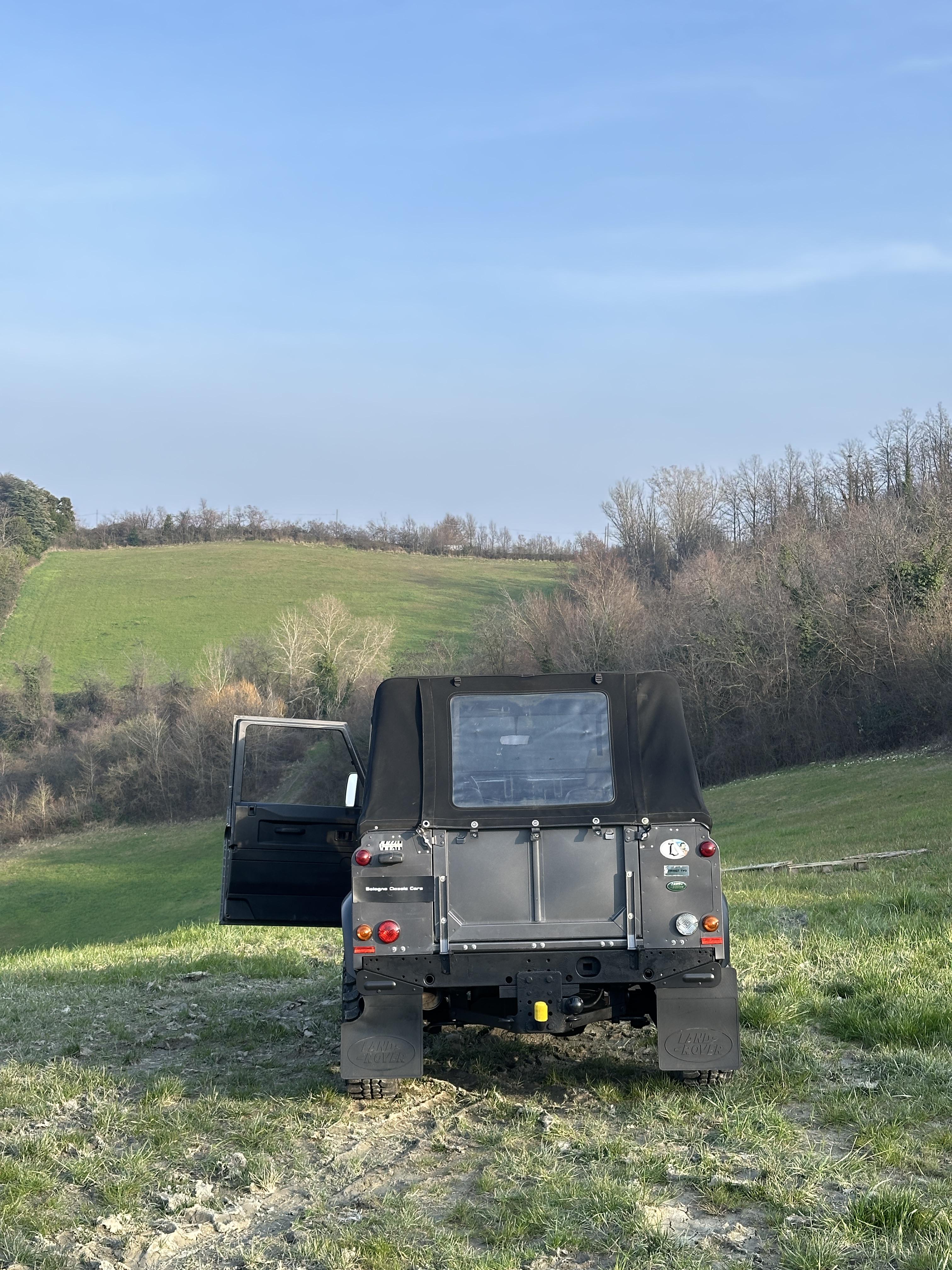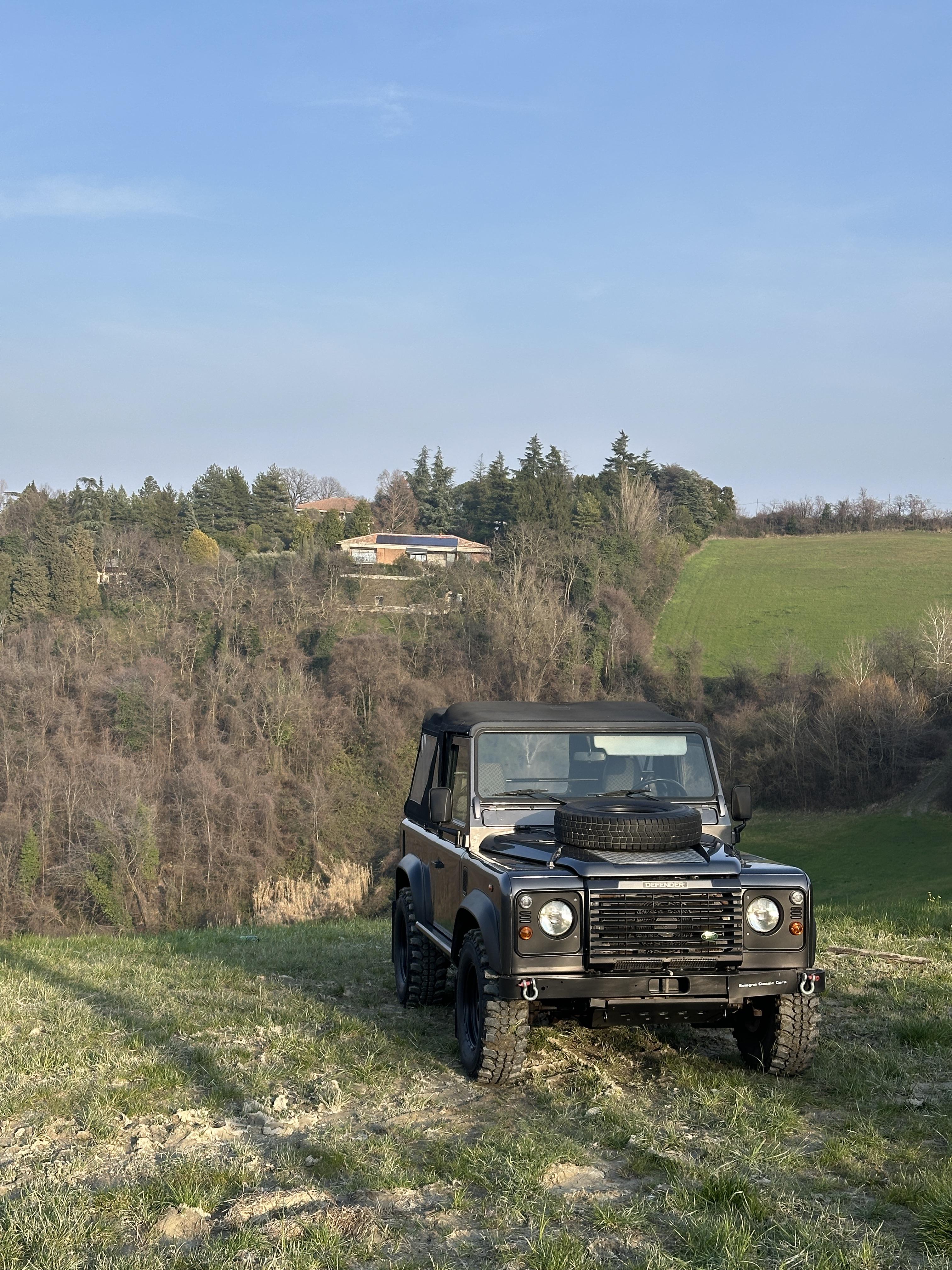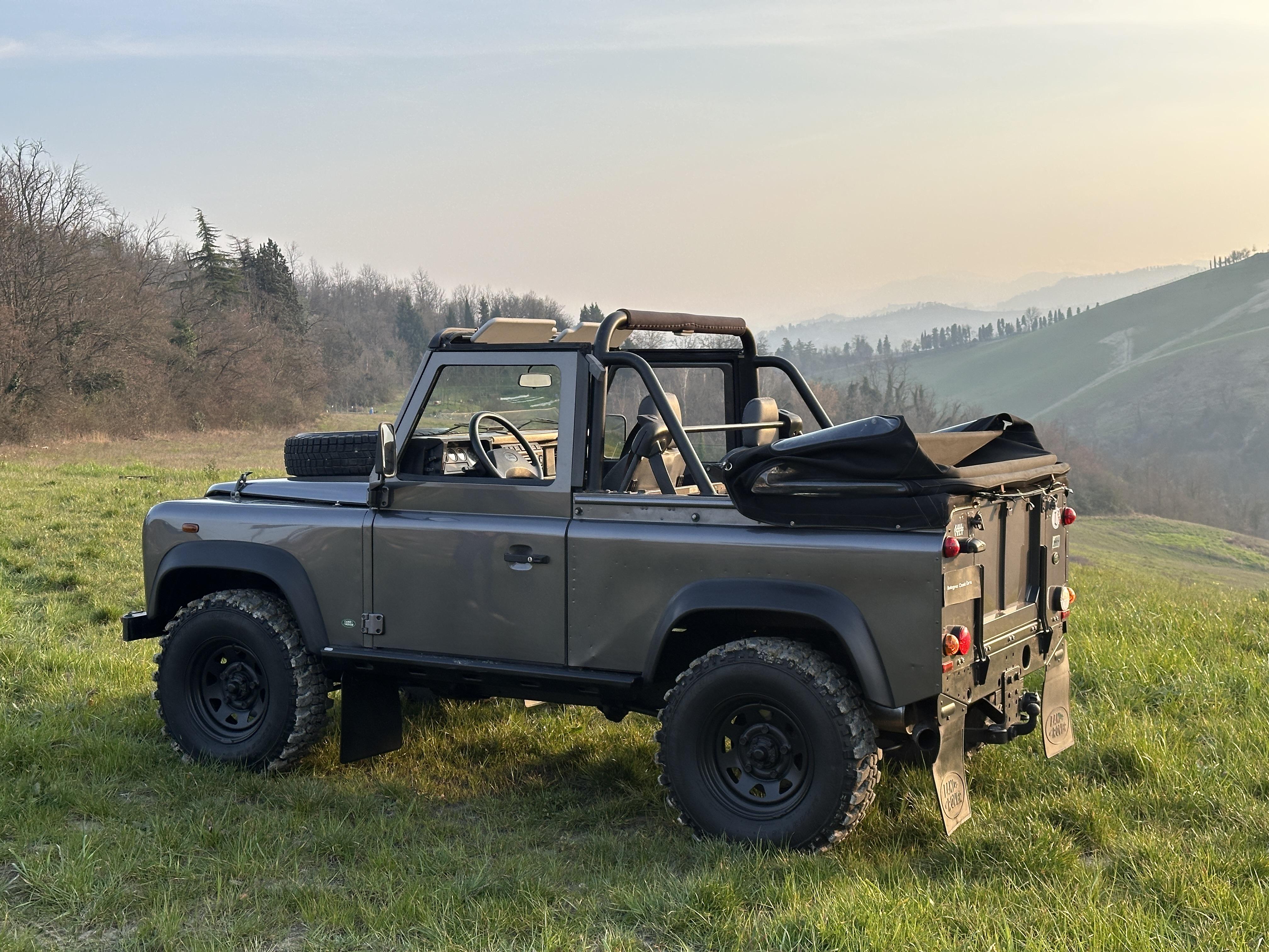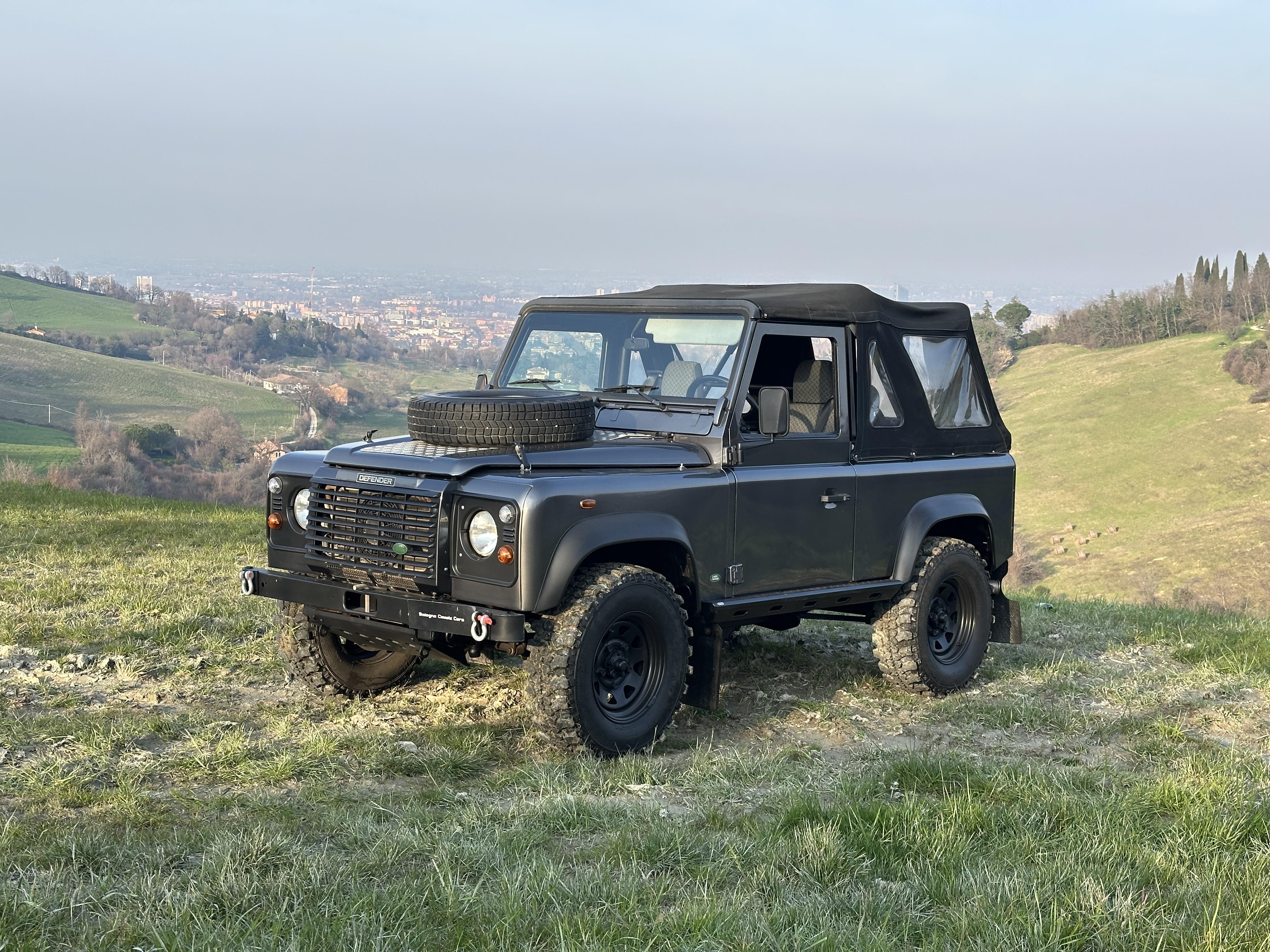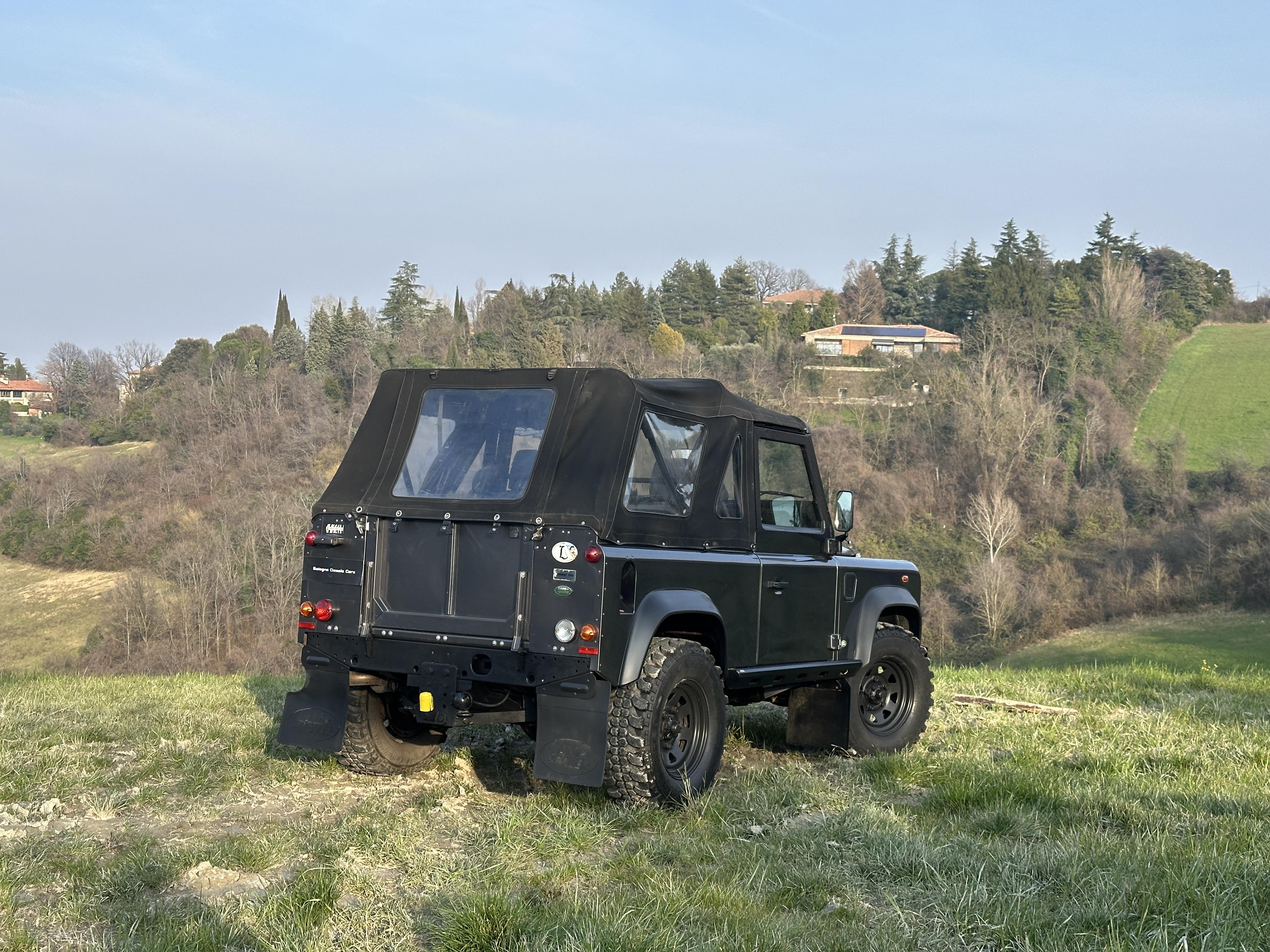 Un rarissimo Land Rover Defender 90 Cabriolet TWO, una speciale edizione limitata prodotta nel 2006 esclusivamente per il mercato tedesco, con una produzione totale di sole 200 unità in tutto il mondo.