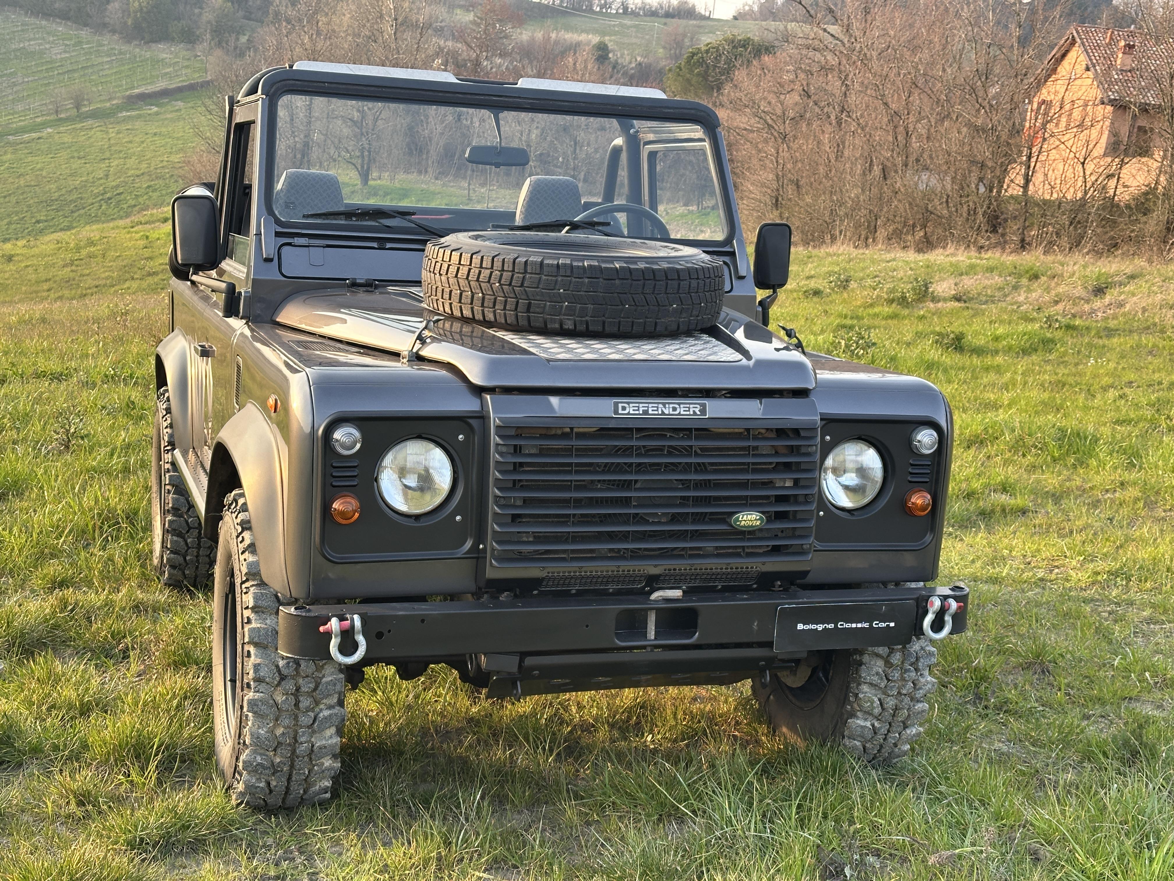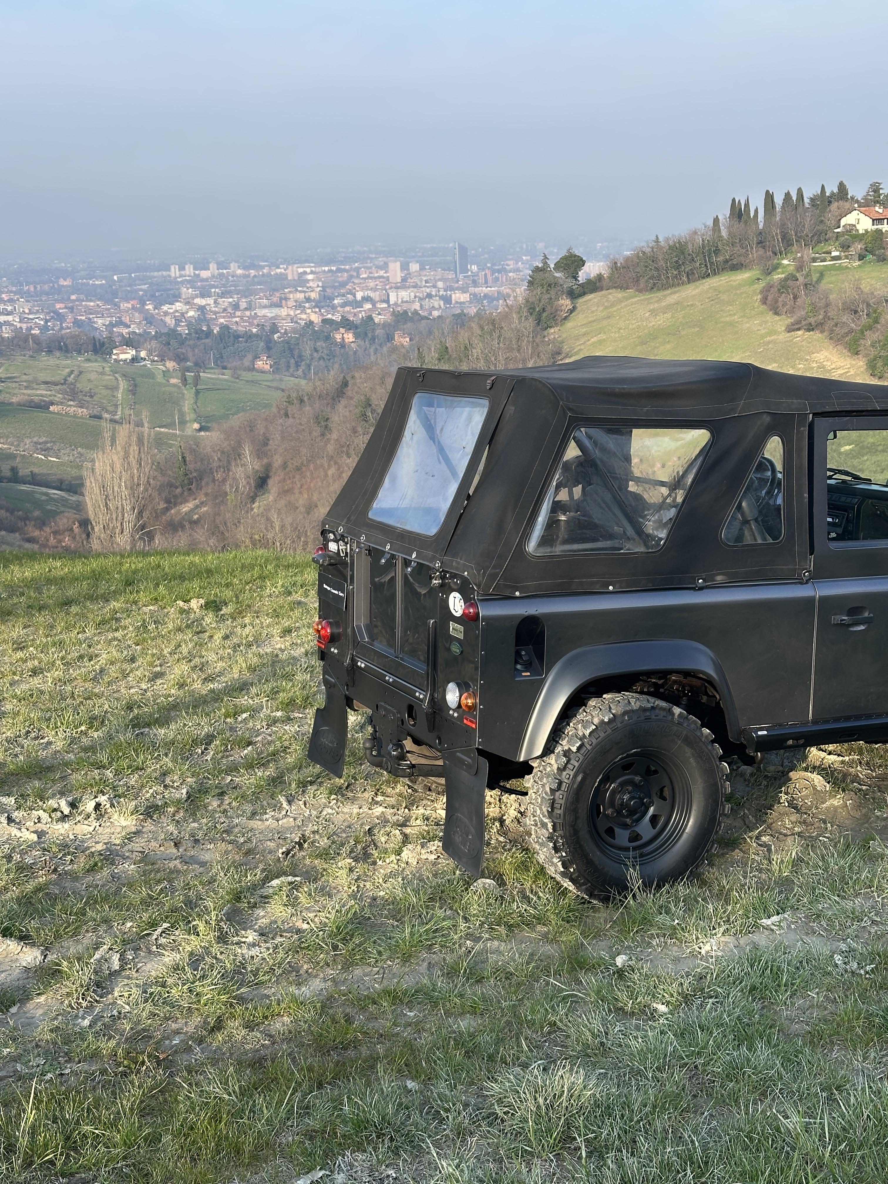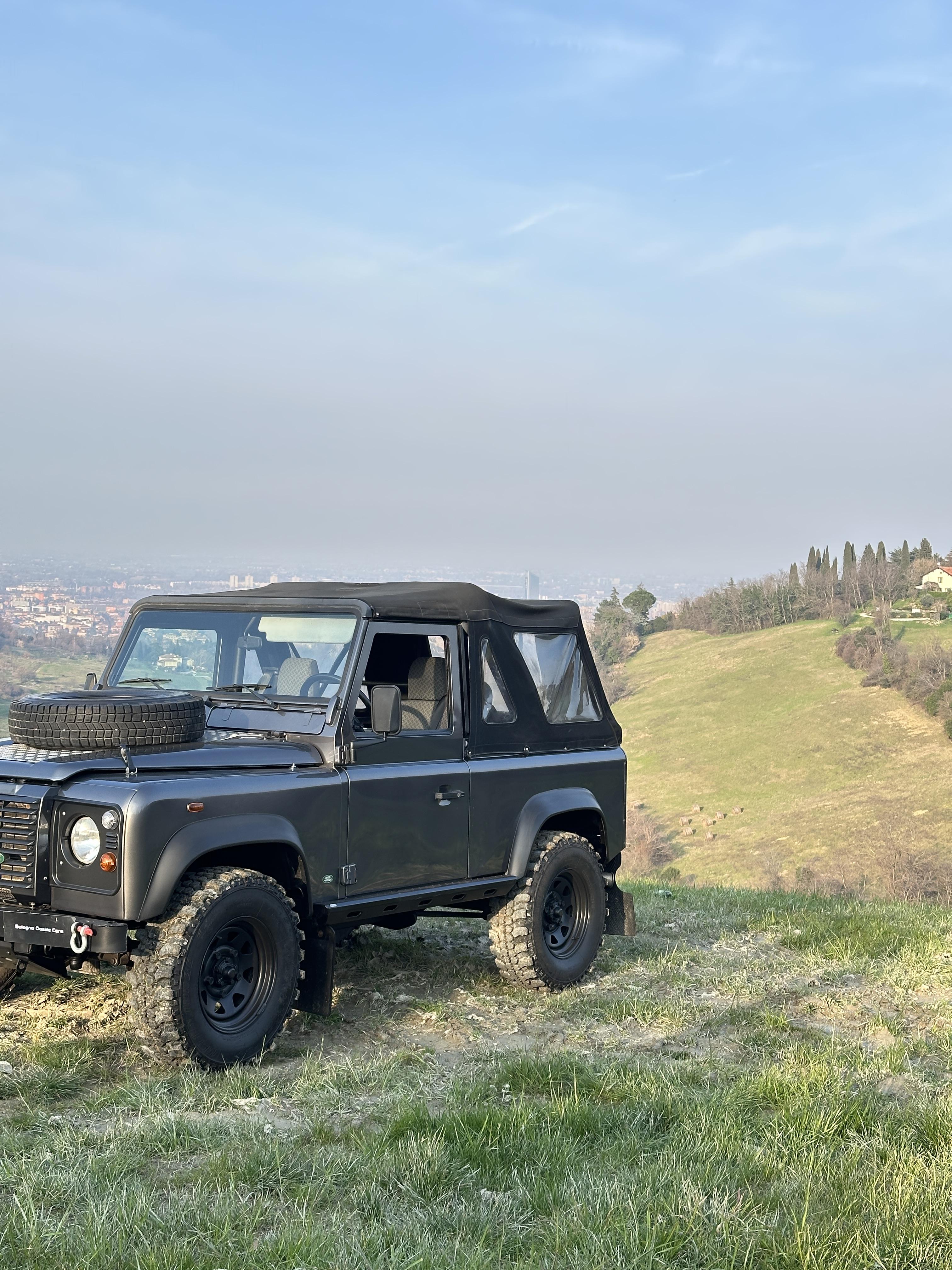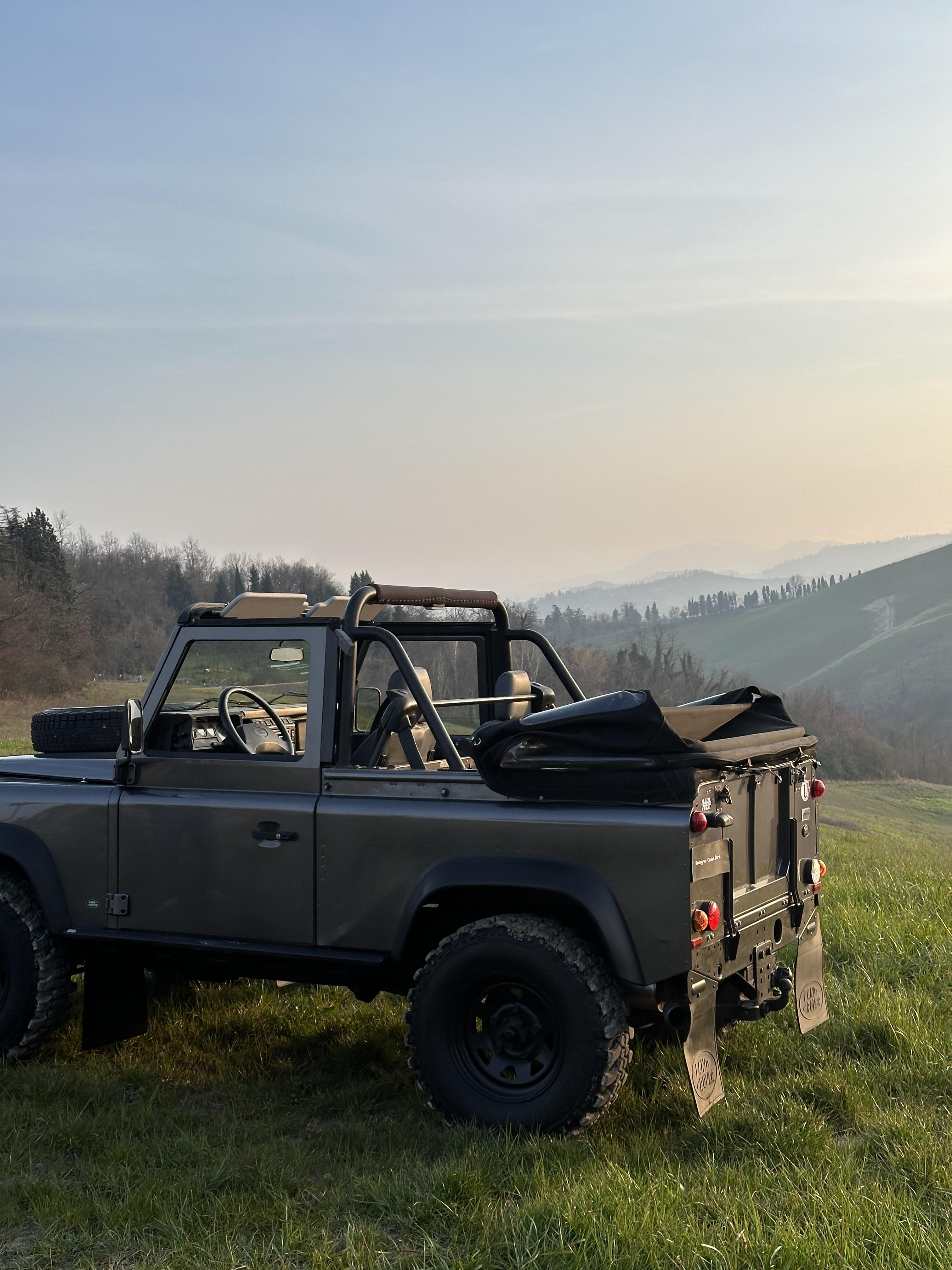Un rarissimo Land Rover Defender 90 Cabriolet TWO, una speciale edizione limitata prodotta nel 2006 esclusivamente per il mercato tedesco, con una produzione totale di sole 200 unità in tutto il mondo.