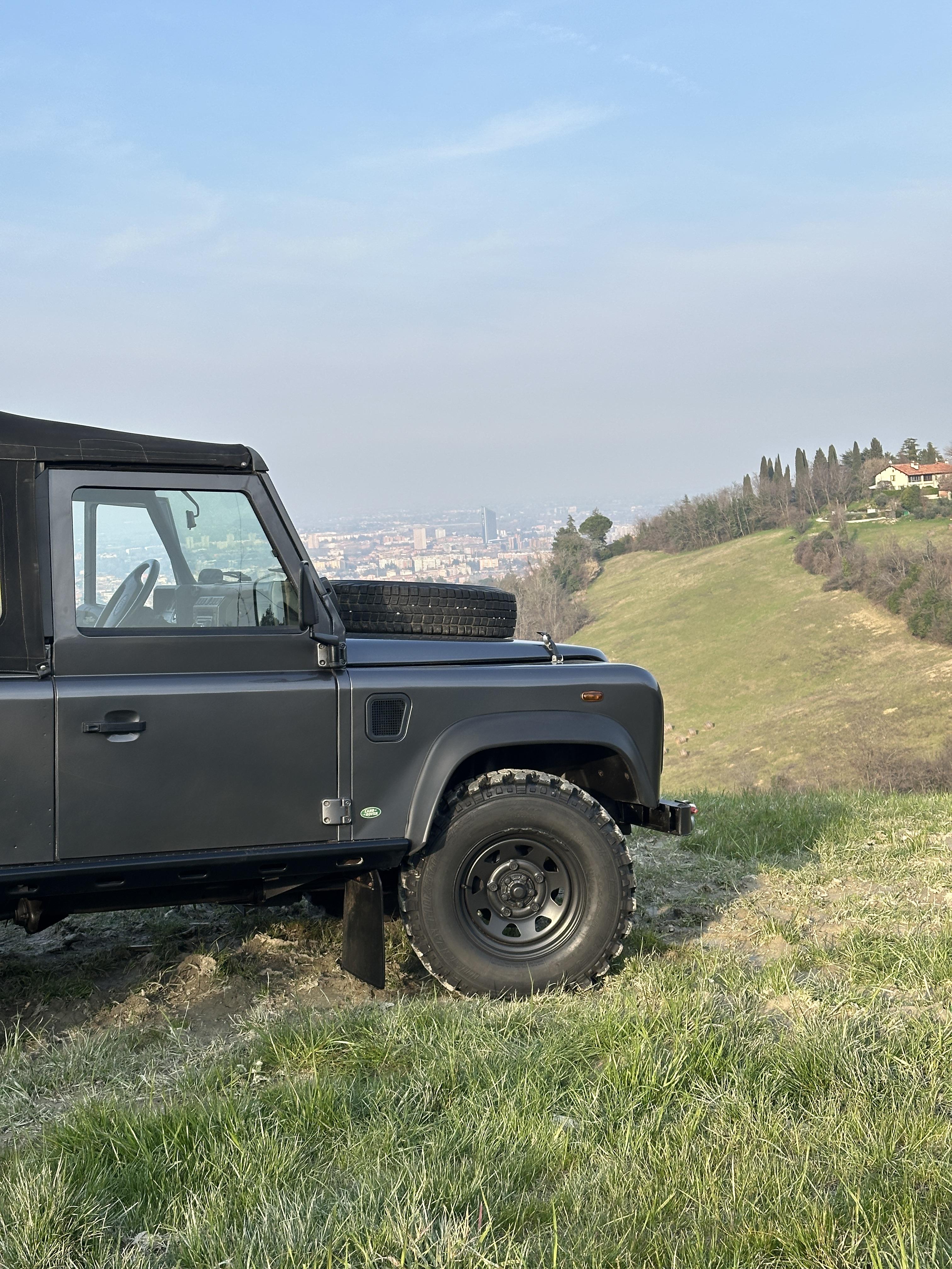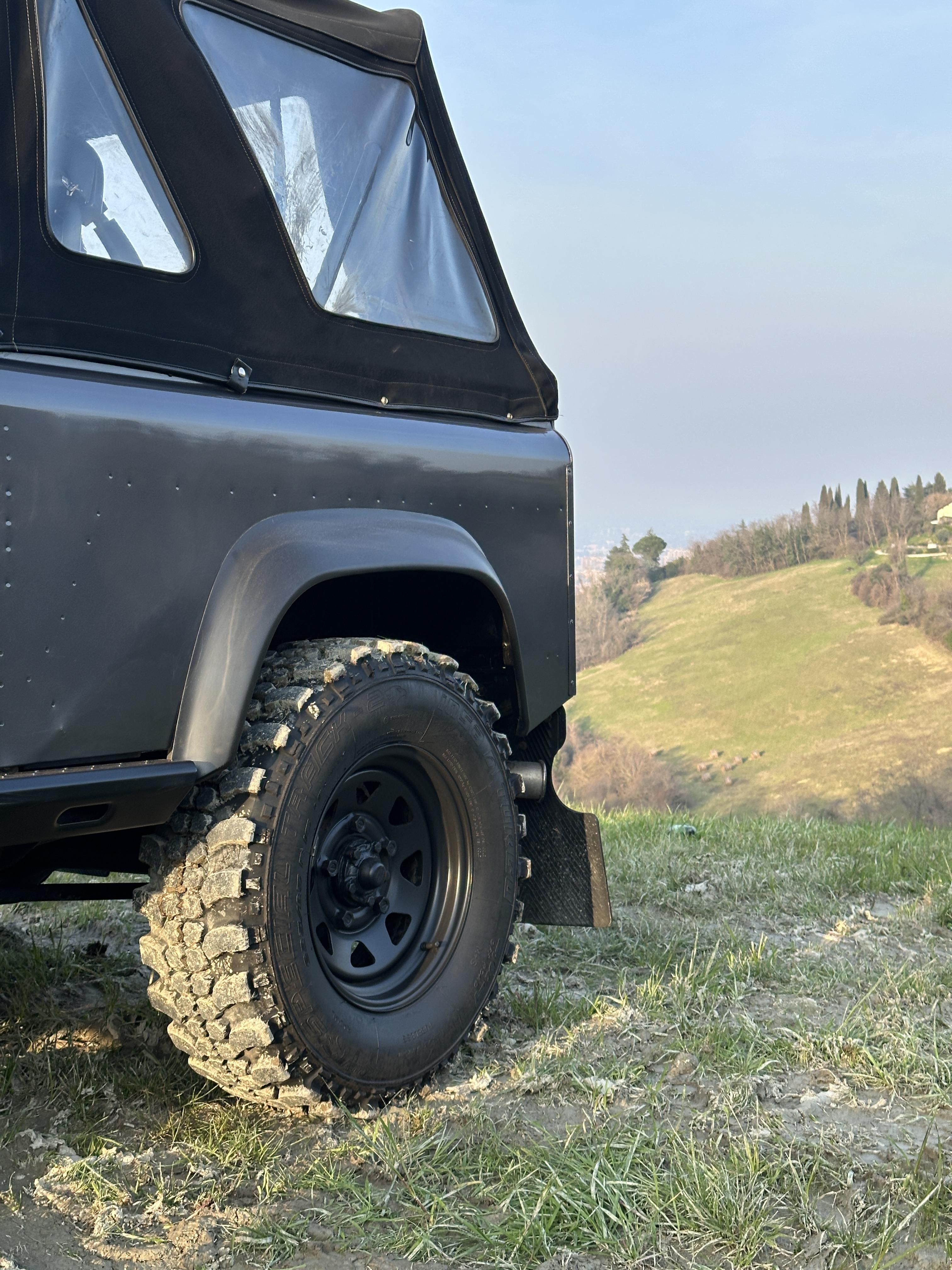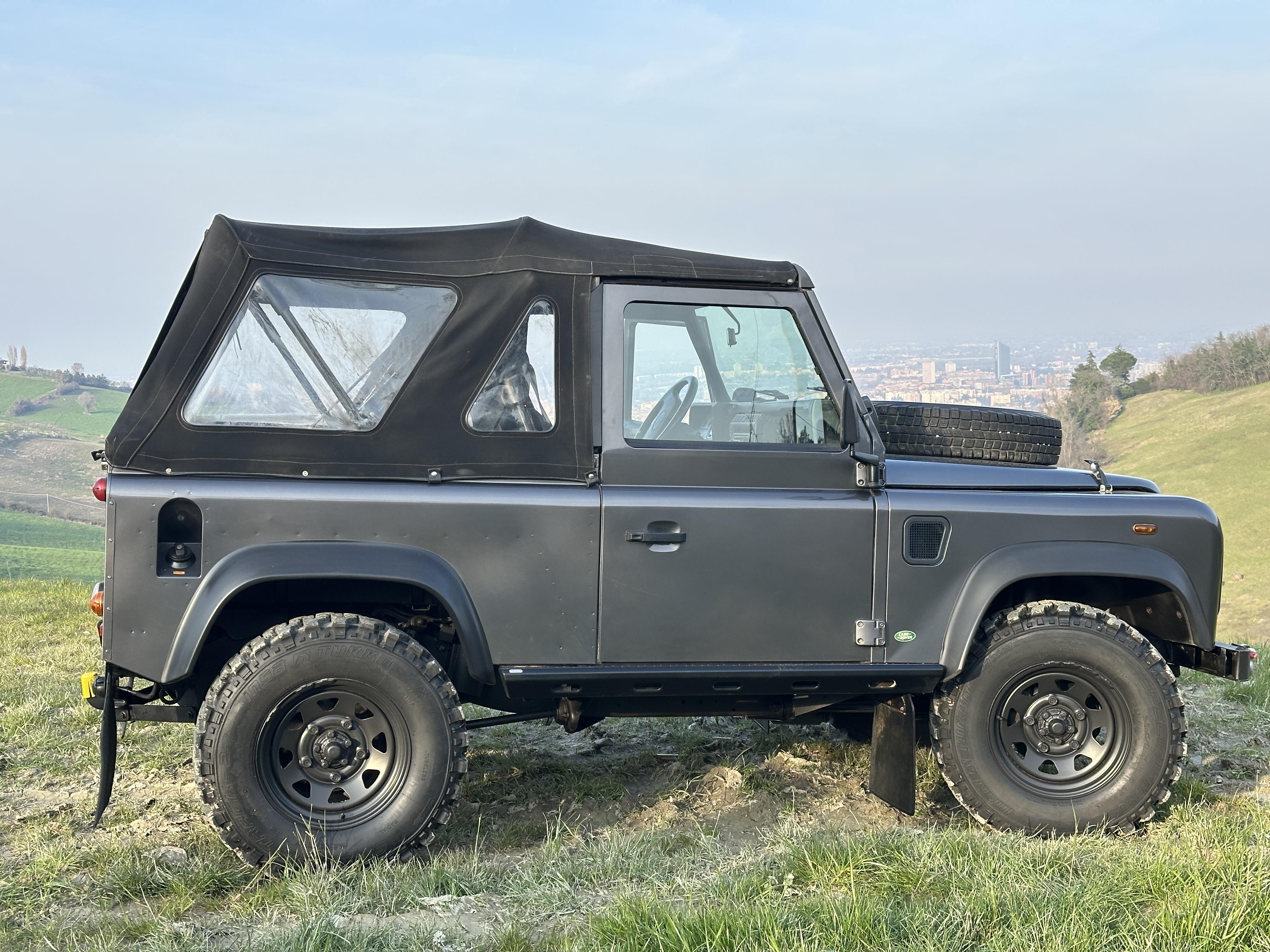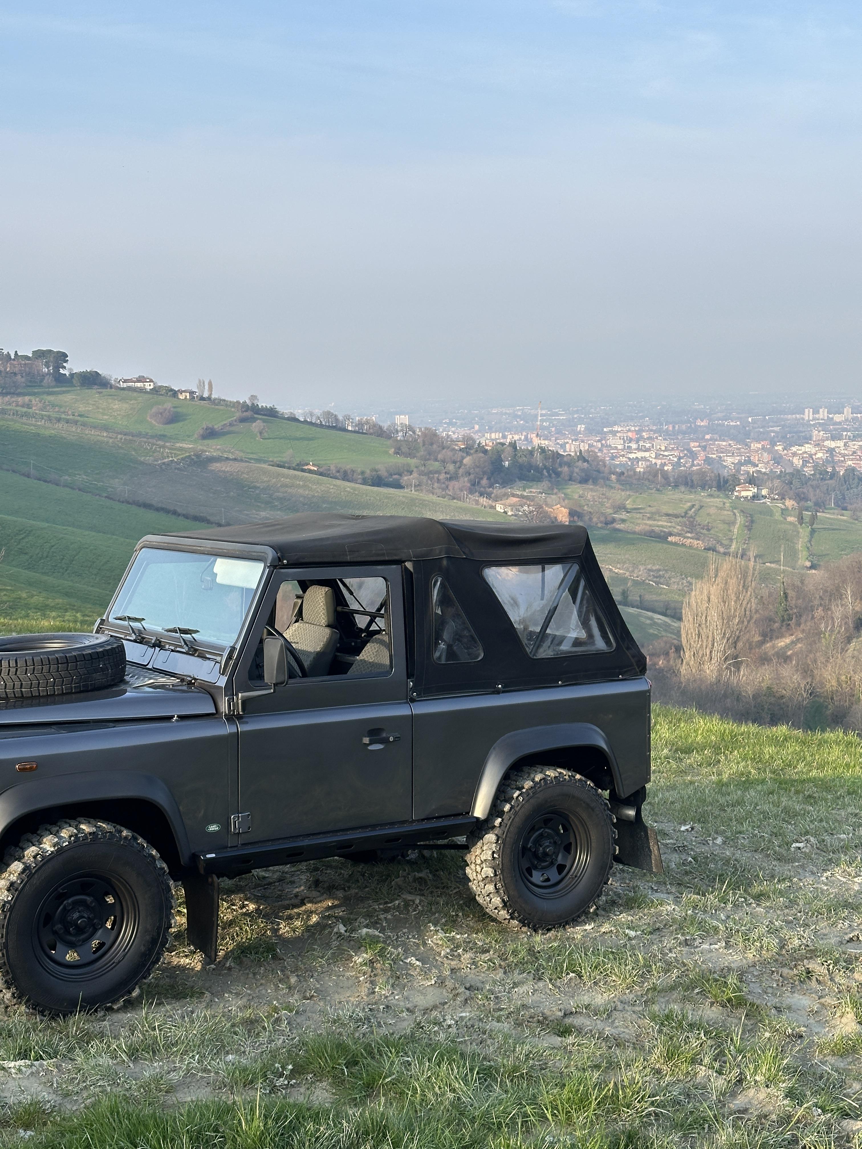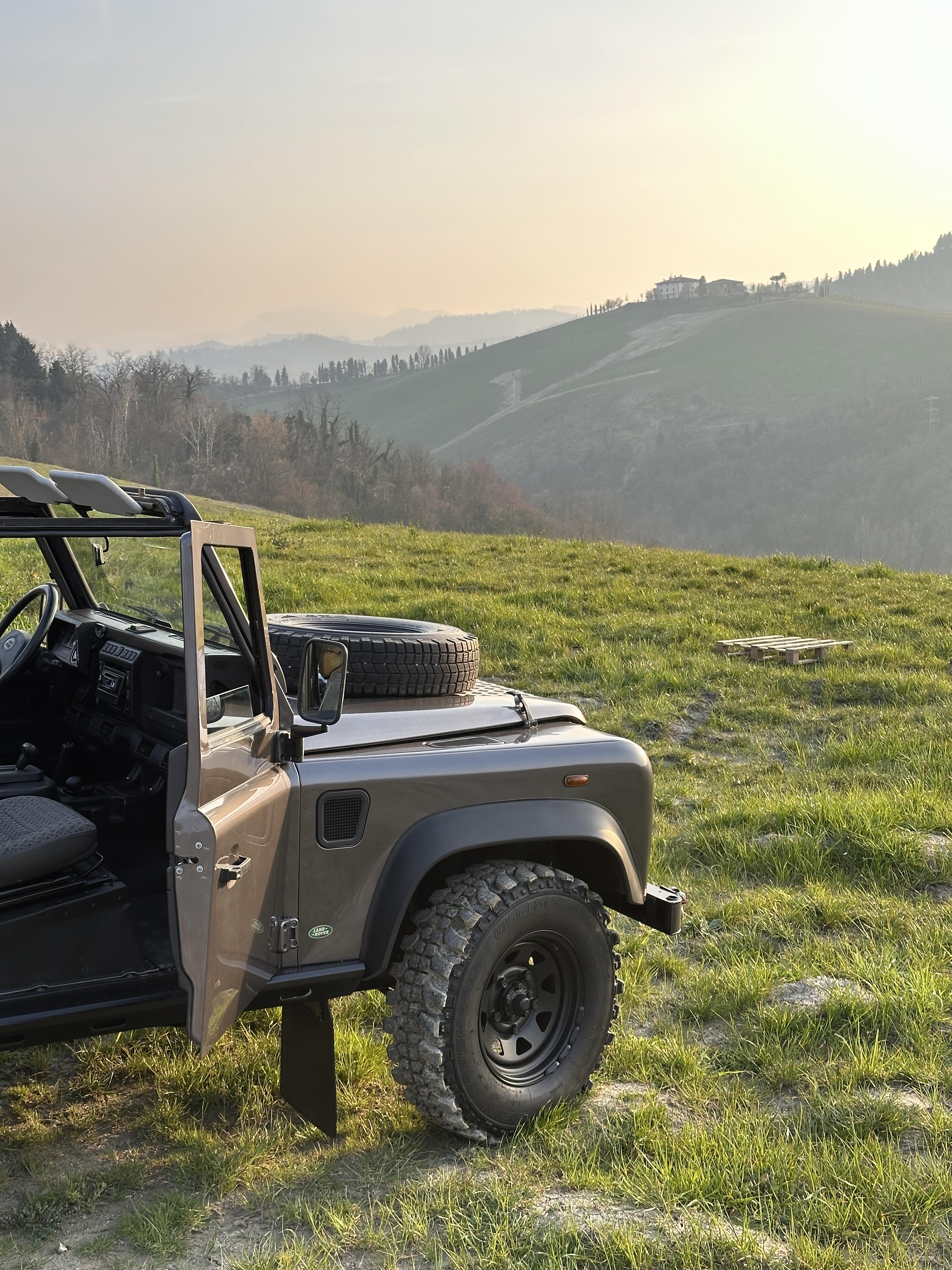 Un rarissimo Land Rover Defender 90 Cabriolet TWO, una speciale edizione limitata prodotta nel 2006 esclusivamente per il mercato tedesco, con una produzione totale di sole 200 unità in tutto il mondo.