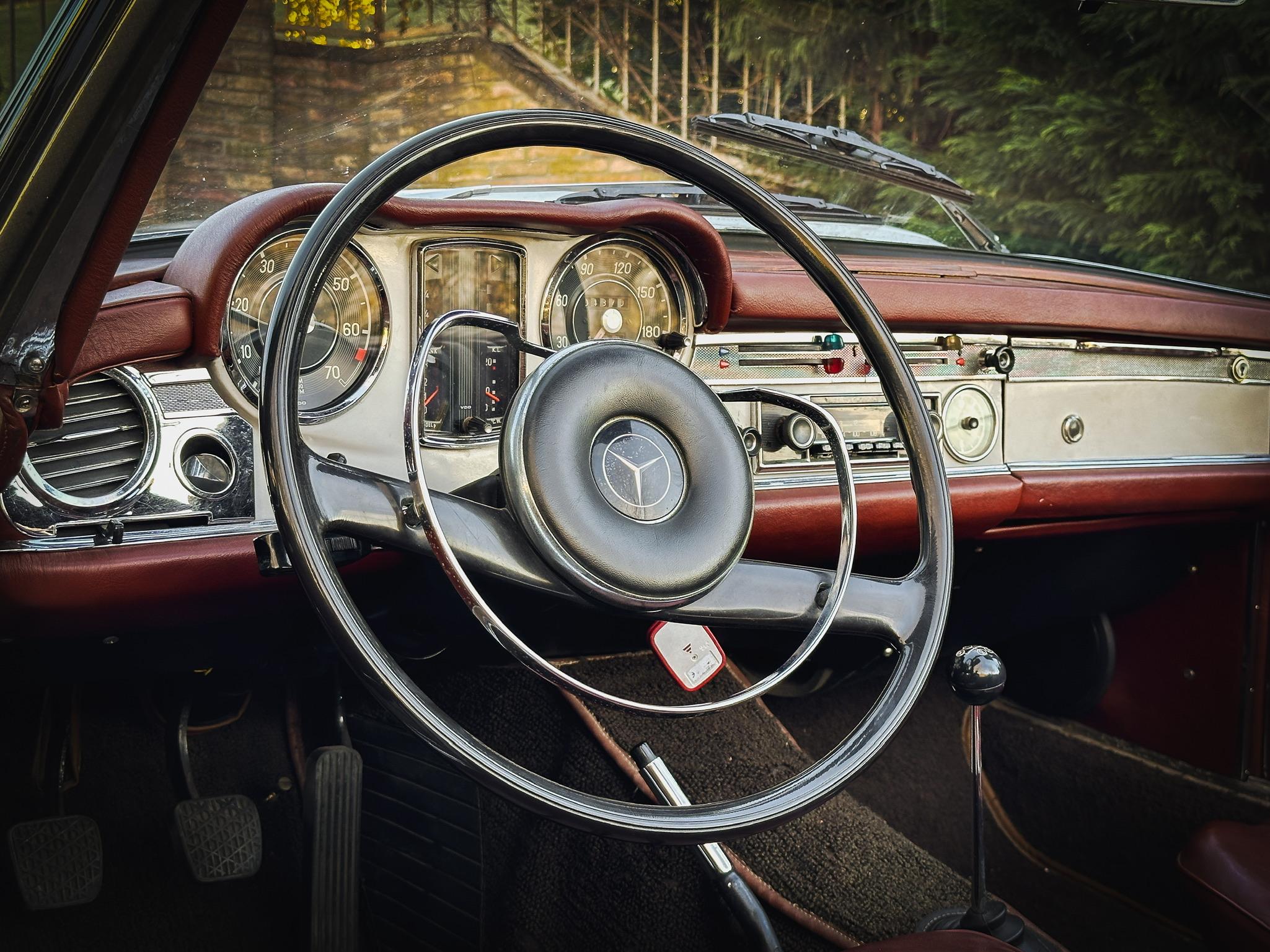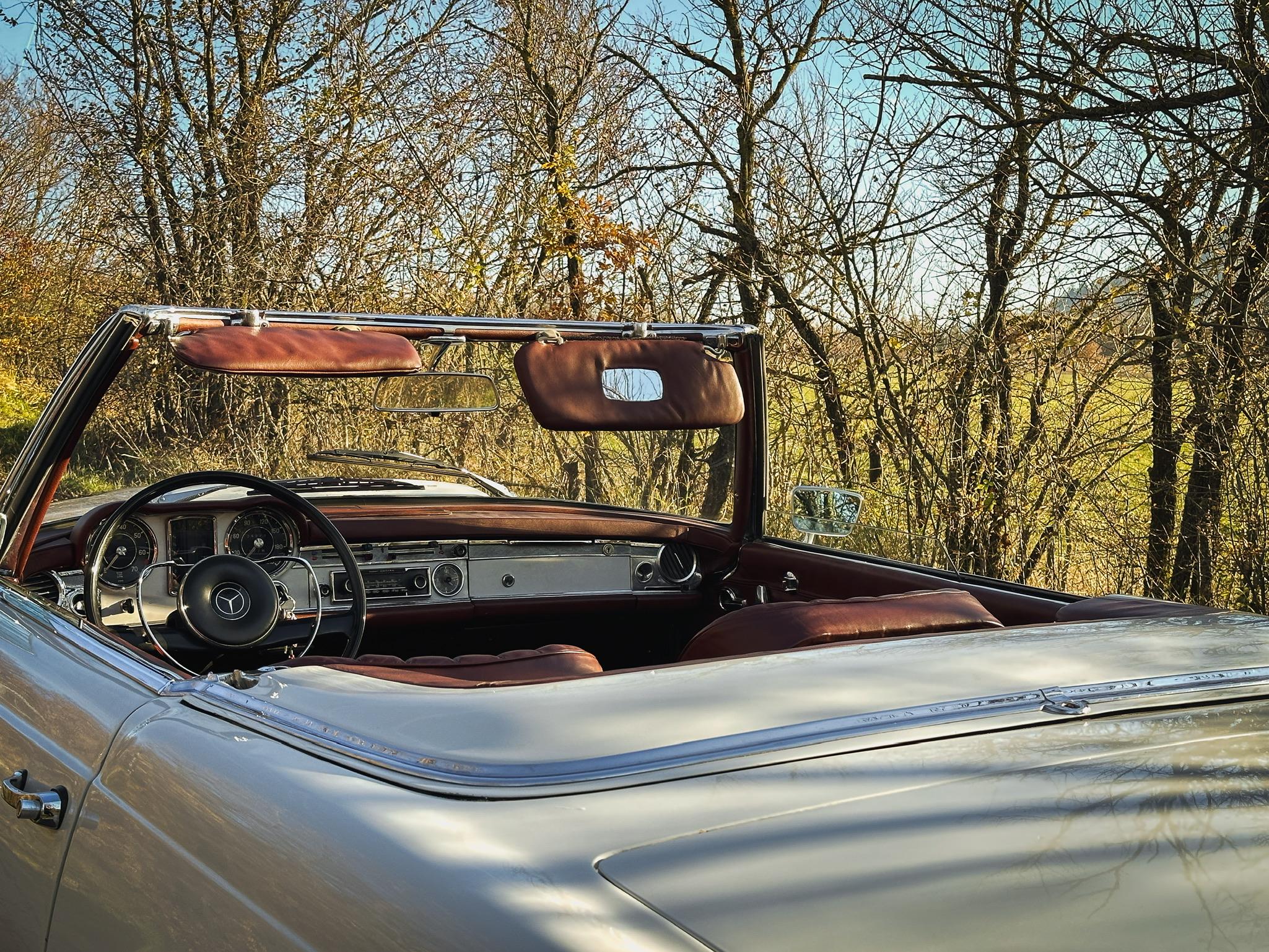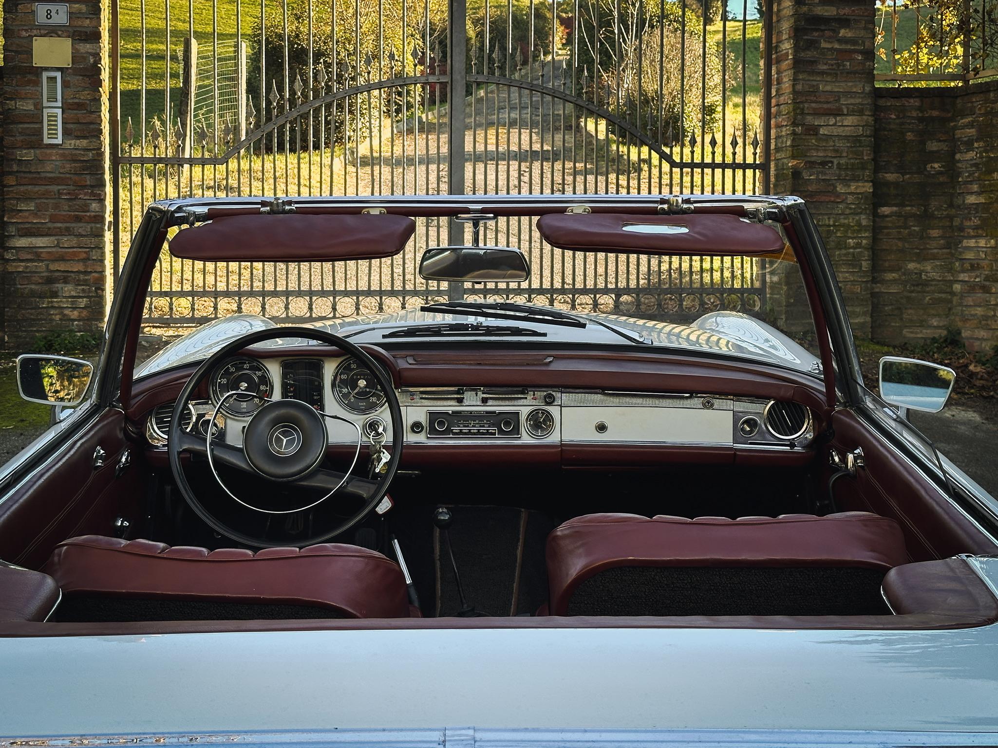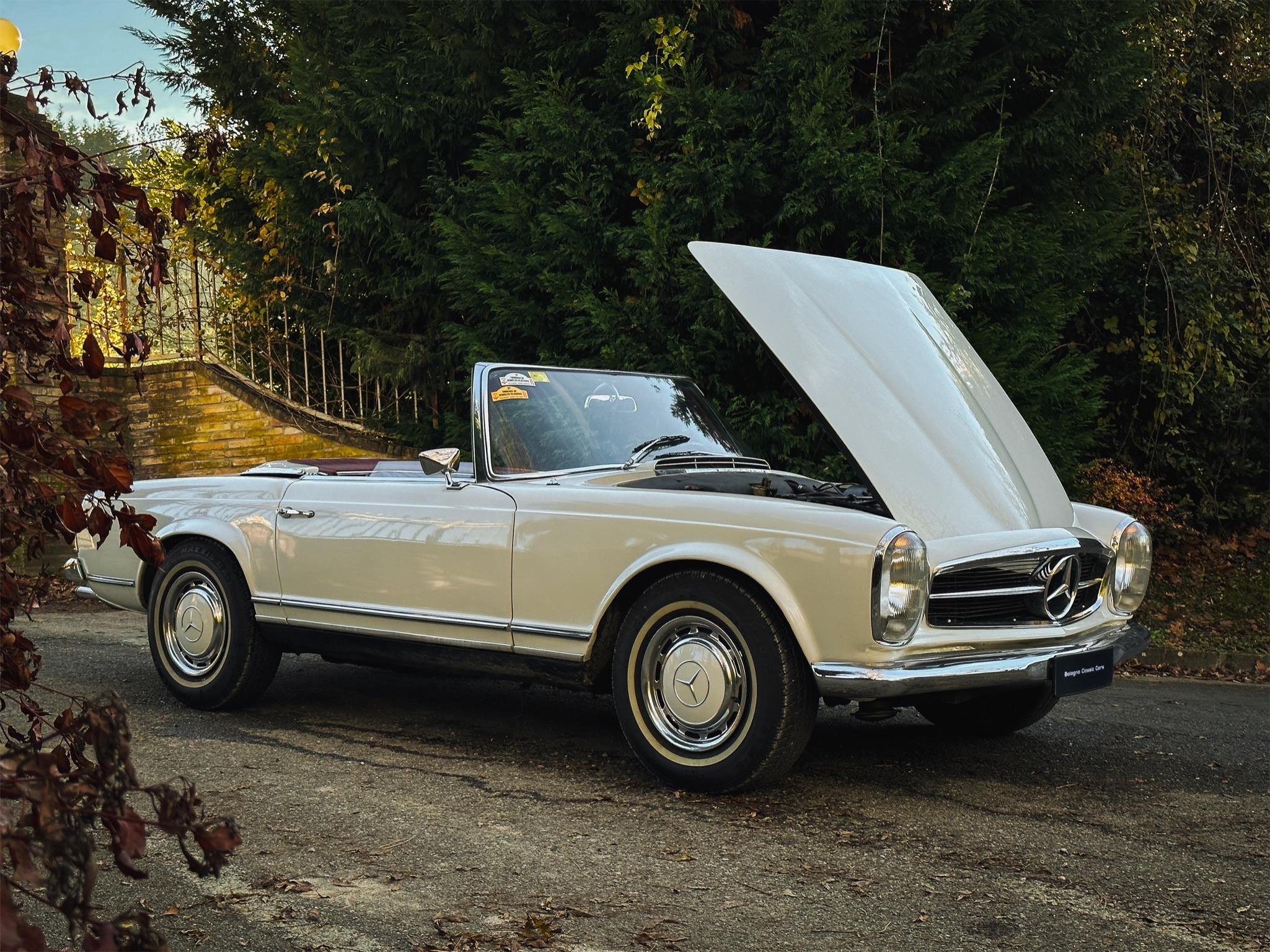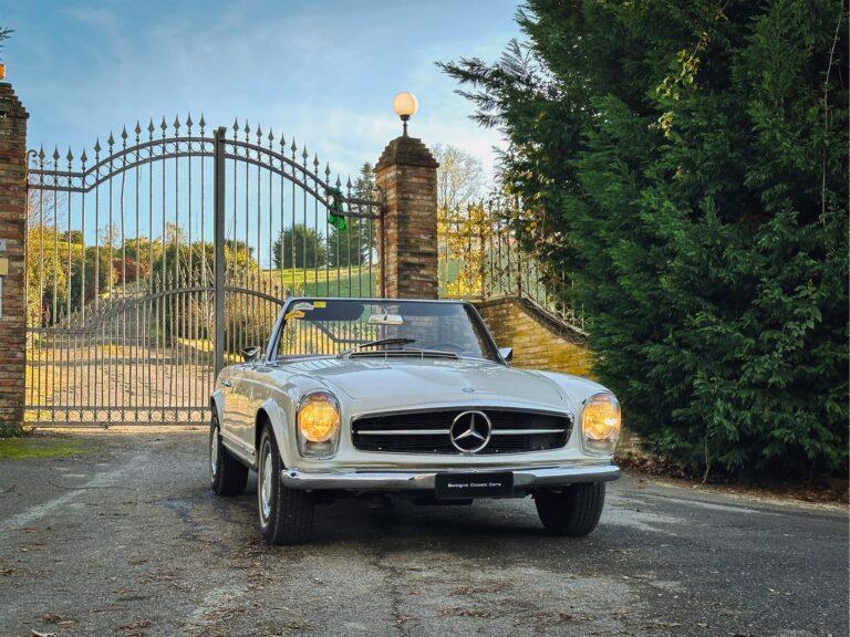 La Mercedes-Benz 230 SL, meglio conosciuta come “Pagoda” per la forma concava del suo hardtop, è una delle spider d’epoca più iconiche e desiderate. Nata come successore della 300 SL e della 190 SL, la W113 unisce eleganza senza tempo, sicurezza (fu pioniera per la zona di assorbimento urto) e un piacevole motore a sei cilindri in linea. Questo esemplare rappresenta la purezza e l’equilibrio del design di Paul Bracq. Perfetta per raduni storici o per una guida estiva di classe.